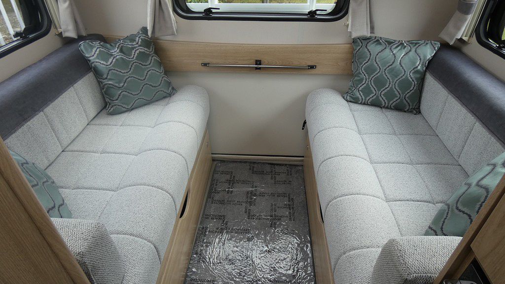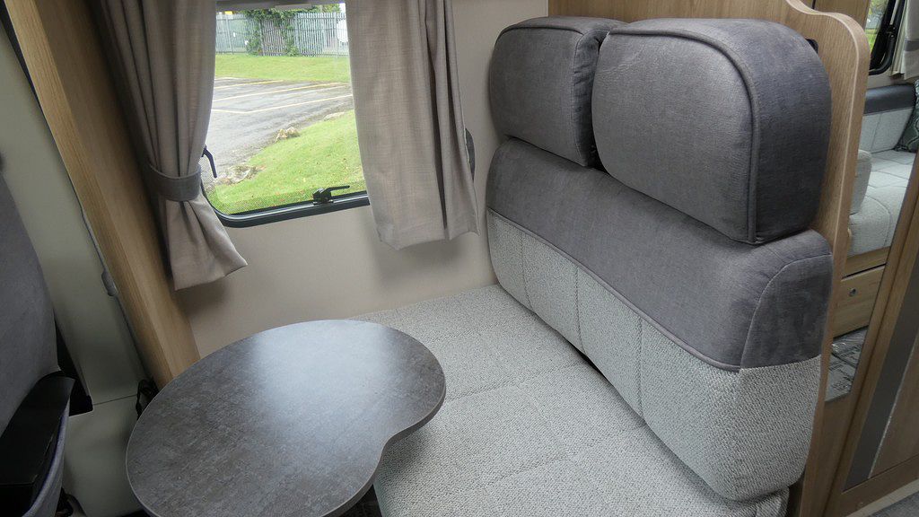 This 135 is a spacious coach built with a rear lounge having facing seats and with triple aspect windows – this lounge area makes into a double bed and there is a tv point and bracket here ready for you to fit your own television. To the centre there is a nearside kitchen with 3-gas hob, combined oven/grill, Dometic fridge freezer and plenty of worktop space. Between the kitchen and the lounge space there is a wardrobe. Opposite the kitchen, between both lounge spaces there is a wetroom washoom with shower.